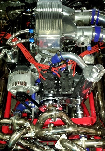 Picture shows : TVR Griffith running Emerald K6 ECU, twin wasted spark coils, 8-2-1 manifolds, remote bypass thermostat and oil/water heat exchanger. This car also runs Drive By Wire throttle, a first for a TVR.